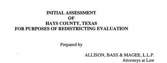 The links below provide the assessment (left) and initial analysis (right) for Hays County by the law firm approved by the Hays County Commissioners Court to oversee the redistricting process: Allison, Bass & Magee. Below those documents is a link to the video of Bob Bass presenting the information to the Hays County Commissioners Court on September 21, 2021. The presentation begins at 2:15:54.